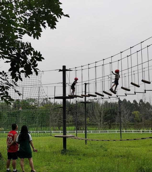 大部分由穿越、攀爬等互動項目組成,其形式可以是空中繩網、索道等等,它通過在垂直空間設置并搭建各種難易不同、超強刺激的關卡,讓兒童體驗高空攀爬,讓孩子在冒險中學習,寓教于樂!